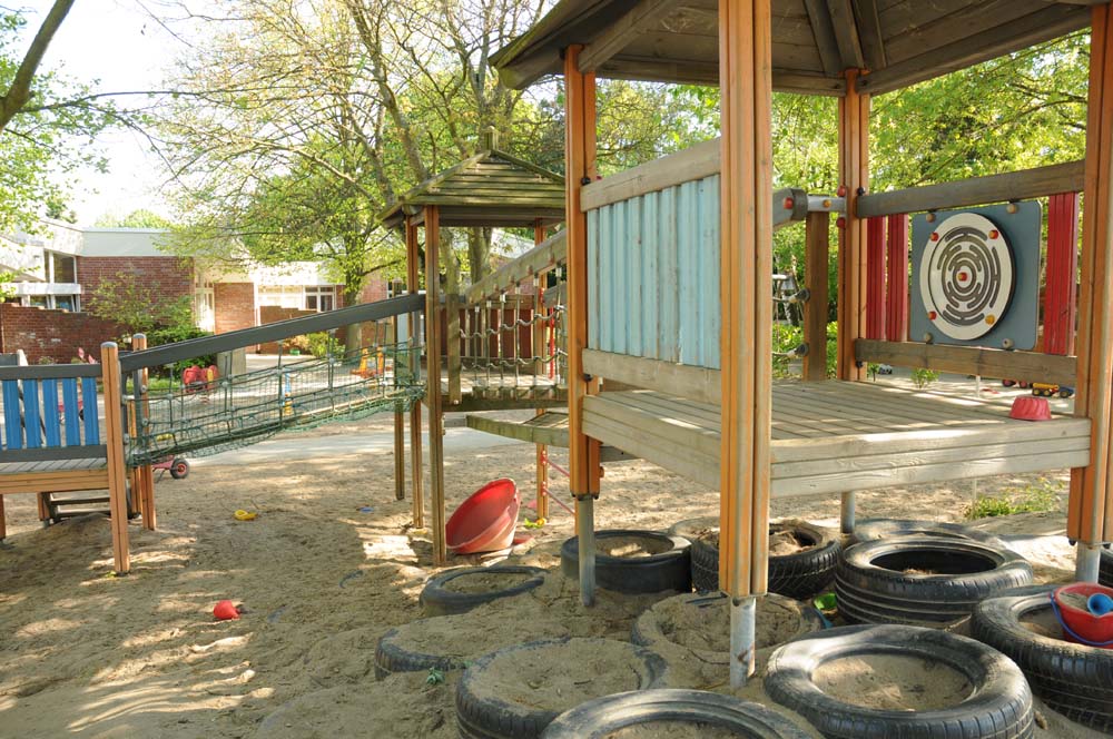 Der Garten bietet den Kindern rund 1600 m² Fläche zum Erleben und Erforschen, zum Bewegen und Bauen, zum Experimentieren und Spielen.